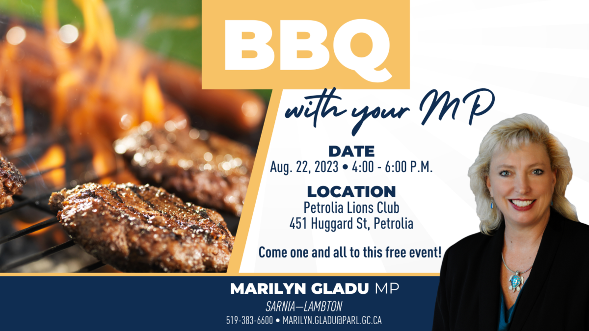 Sarnia Lambton Conservative Association Summer BBQ BBQ Event Thursday August 18, 2022 Kenwick on the Lake Park Bright's Grove, Sarnia 3:30 - 5:30 PM It will be great to see...